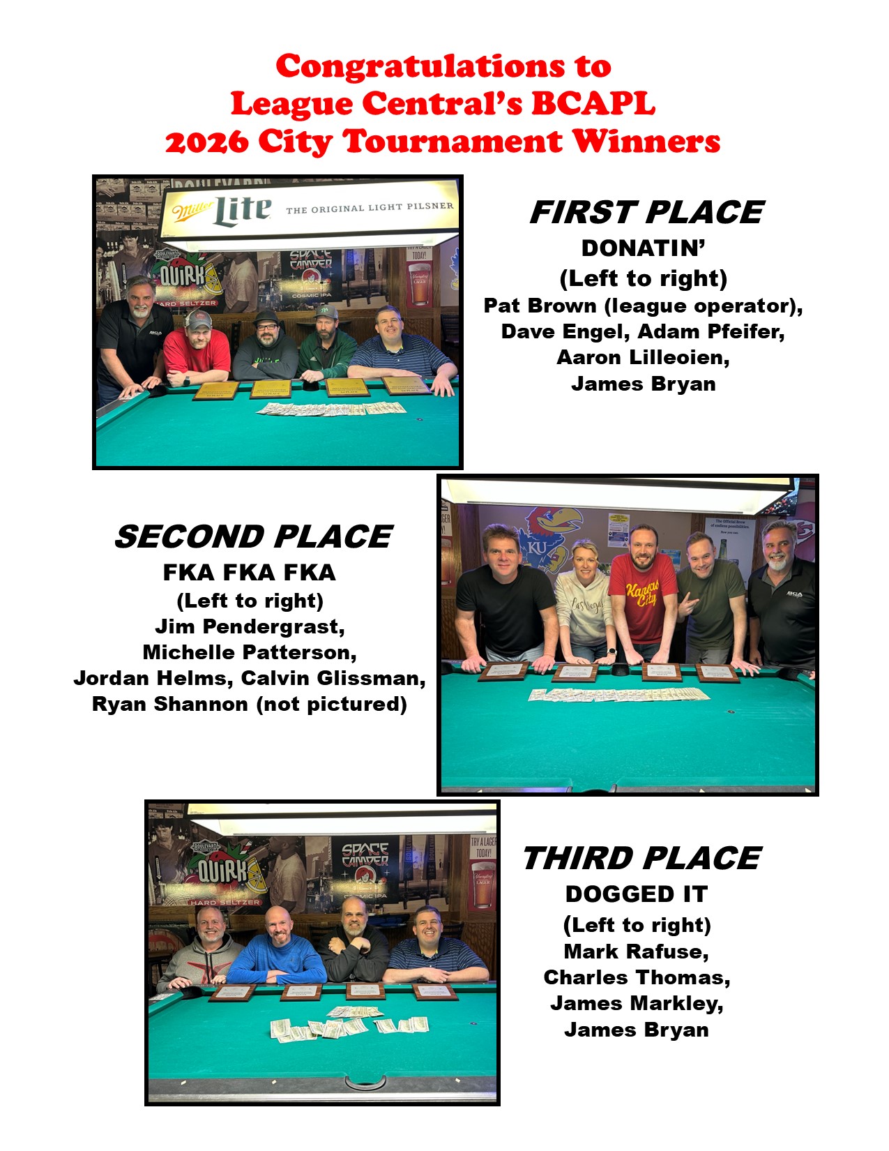 Pool Tournament Winners 2025 League Central City Tournament Winners 2026 League Central City Tournament Winners